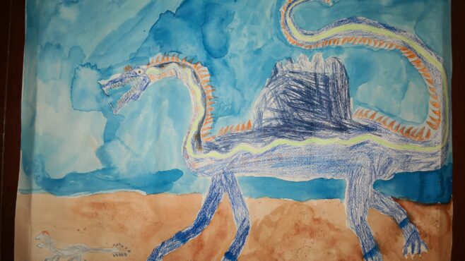 みんなの作品首が長いブラキオサウルス(ニックネーム:むーくん さん) ニックネーム:むーくん さん年齢:7 歳Bコース「未来の芸術家コース」コメント:プチプチ(緩衝材)をつかって恐竜の形を考えて作りました。口のところに切り込みを入れたところを工夫しました。みんなの作品