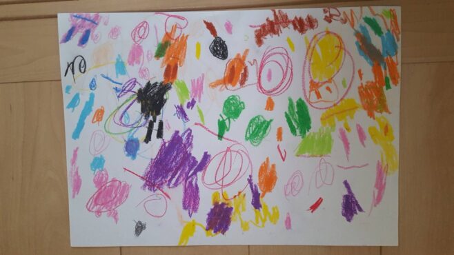 みんなの作品かぞくのみんなを描いたよ(ニックネーム:まいまいまいチャン さん) ニックネーム:まいまいまいチャン さん年齢:2 歳Bコース「未来の芸術家コース」コメント:家族5人の絵を描いたそうです。クレヨンで一生懸命描いていました。絵を描く事が大好きなので、これからも沢山描かせてあげたいです。みんなの作品