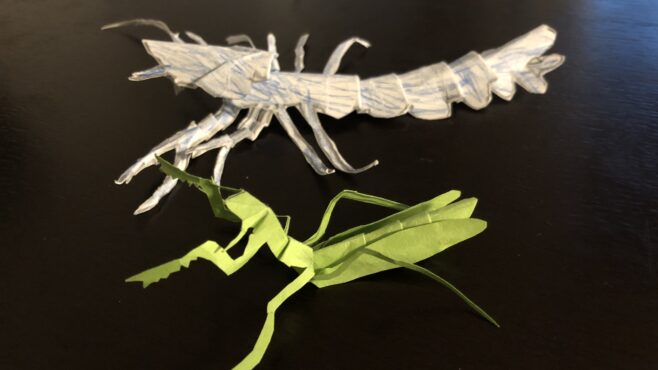 みんなの作品【Bコース審査員特別賞B】切り絵~カマキリとザリガニ~(ニックネーム:Kuizaki さん) ニックネーム:Kuizaki さん年齢:8 歳Bコース「未来の芸術家コース」コメント:大好きな生き物を、切り絵で作りました。厚紙を半分に折り、完成図を想像して半分だけ描き、ハサミで切って、脚などを折り曲げて立体的にしました。たくさんある中か...みんなの作品