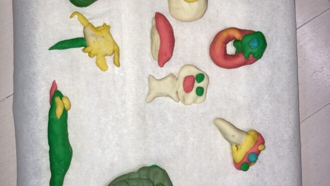 みんなの作品宇宙人のすみか(ニックネーム:はるくん さん) ニックネーム:はるくん さん年齢:7 歳Bコース「未来の芸術家コース」コメント:小麦粉に水を加えてこねて一から粘土を作った。色をつけてカラフルにした。色から想像して地球が出来た。マグロのお寿司に目玉焼き、黄色いお花、噴水、遊園地のゲート、宇...みんなの作品