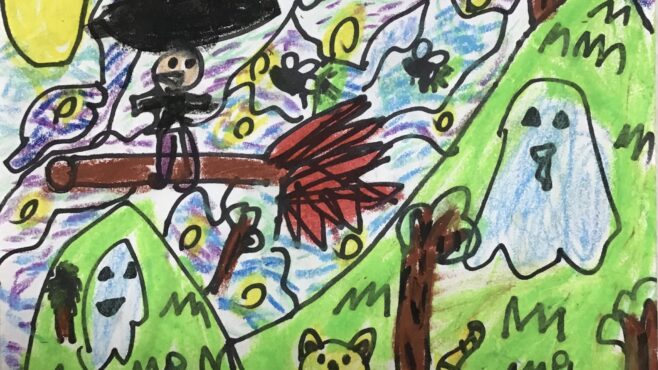 みんなの作品Halloween(ニックネーム:maomi さん) ニックネーム:maomi さん年齢:6歳Bコース「未来の芸術家コース」コメント:Halloweenの楽しいシーンを表現した絵です。豊富な色彩、大胆な構図で表現しています。みんなの作品
