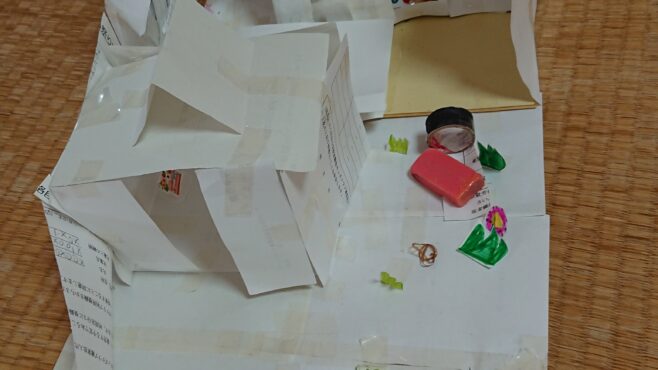 みんなの作品お家(ニックネーム:ひーぽんさん) ニックネーム:ひーぽん さん年齢:7歳Bコース「未来の芸術家コース」コメント:折り紙で作ったキャラクターのお家を作成しました。二階建てで、庭付きです。セロハンテープのみで作成しています。みんなの作品未分類
