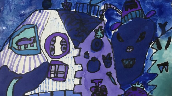 みんなの作品【Bコース審査員特別賞B】青色の部屋達(ニックネーム:maomi さん) ニックネーム:maomi さん年齢:6歳Bコース「未来の芸術家コース」コメント:色んな形の家、建物を表現した絵のようです。青色は海をイメージされた色です。夜色でもあります。審査員コメント:力強くて、元気があっていいです。みんなの作品未分類