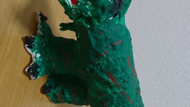 みんなの作品【Bコース審査員特別賞B】ティラノザウルス(ニックネーム:さくにゃん さん) ニックネーム:さくにゃん さん年齢:7 歳Bコース「未来の芸術家コース」コメント:紙粘土で作りました。大きく口をあけて迫力ある姿にしました!しっぽが折れないように気を付けて作りました。審査員コメント:スイカおばけに見えて私は好きです。いつも...みんなの作品